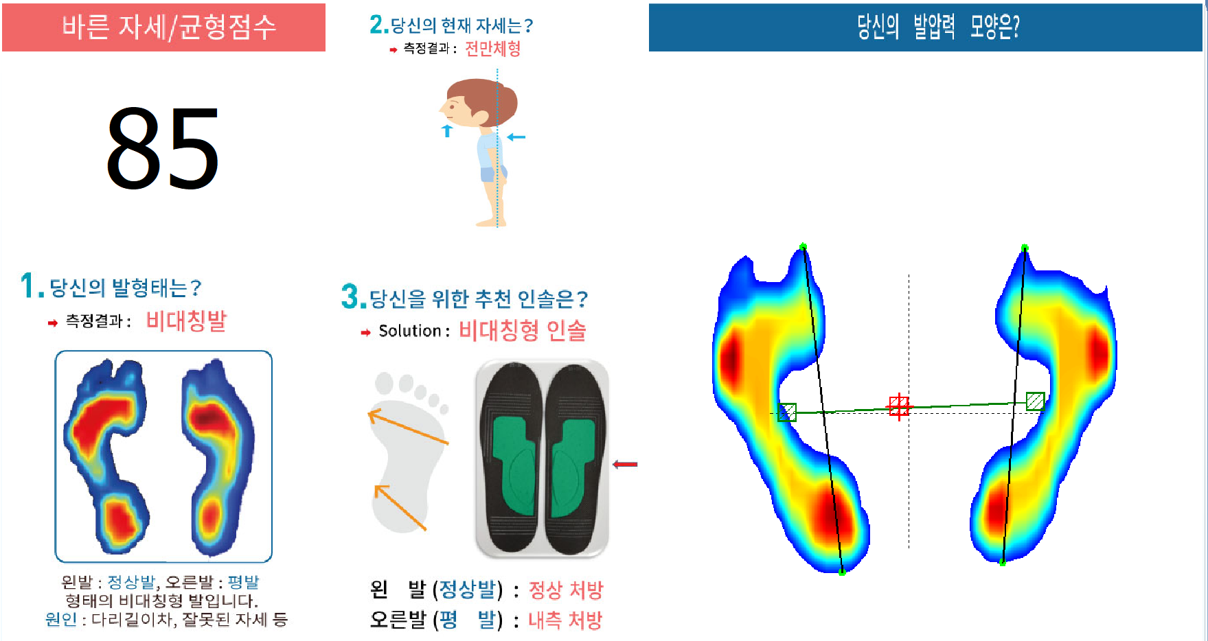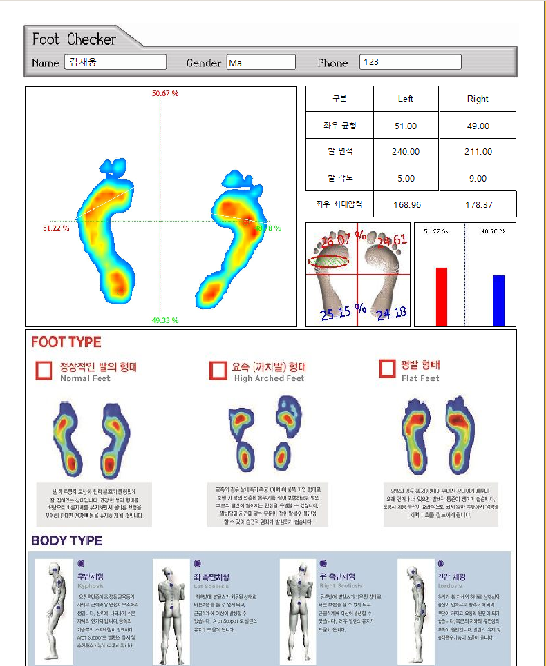 * 정적 균형도, 족압 분포도, 각 발의 최대압력 검사